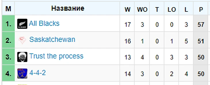 Соответственно в высший дивизион выходят All Blacks, Saskatchewan, Trust the process и 4-4-2.