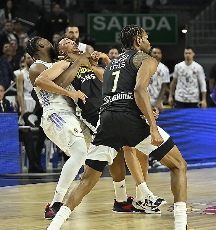 Точку в матче поставил Зак Ледэй за 2,35 до сирены, когда игроки «Реала» уже отказались от сопротивления и перешли к откровенному хулиганству. Сначала на Кевине Пантере жестко сфолил Венсан Пуарье. А когда его удалили с 5 фолами, лидера «Партизана» атаковал мадридский капитан Серхио Юль.