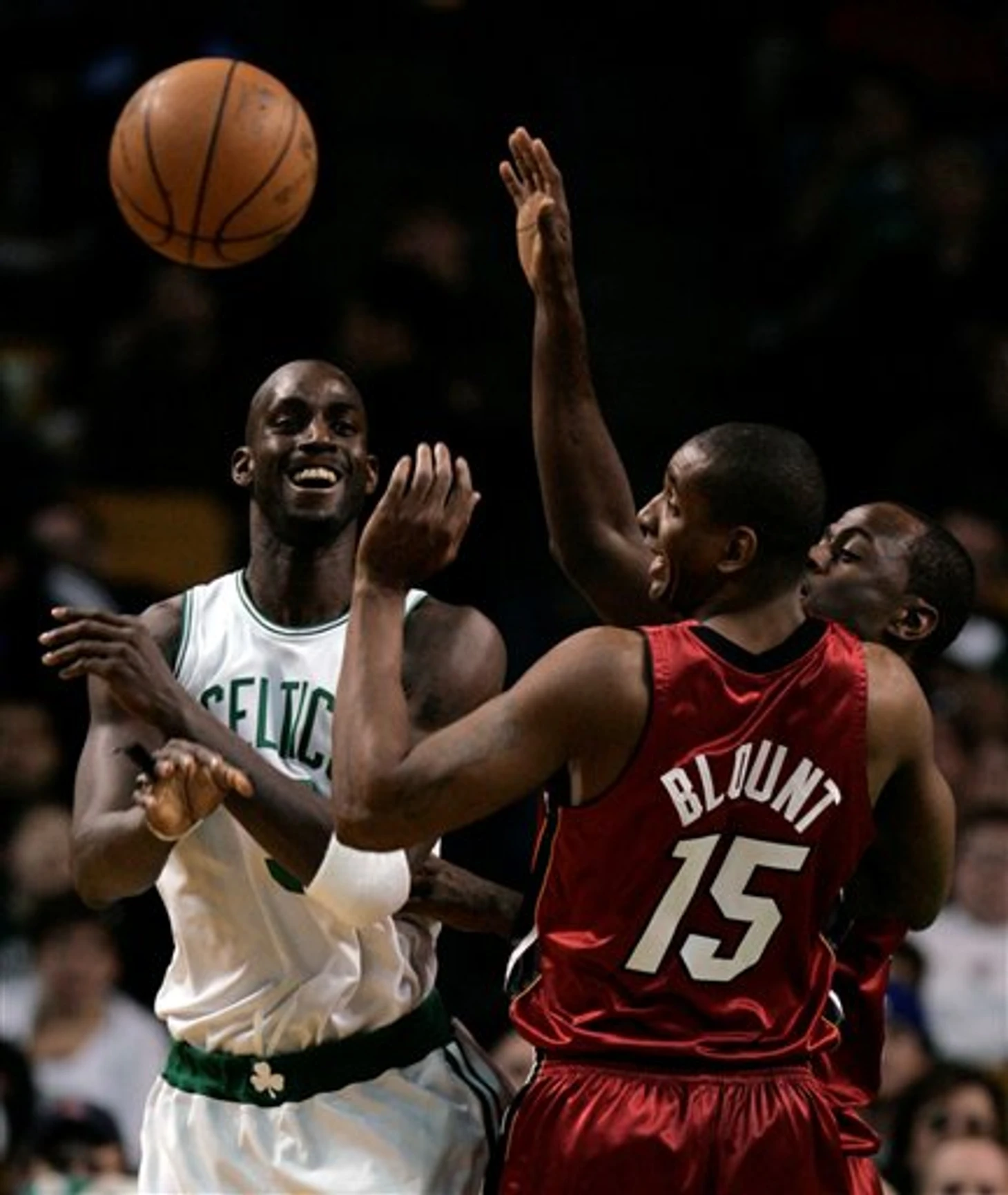 30.03.2008. «Бостон» � «Майами». Весело и Кевину Гарнетту, и Марку Блаунту. Первому досталась очередная победа. Второго поражения уже не расстраивают.