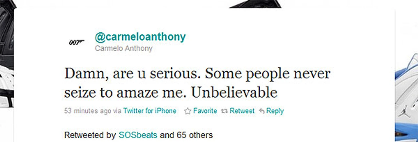 «Никс» встречали Мело дома хлебом-солью, специально написанными по случаю композициями и чествованием Айзейи Томаса. Это он все принял как должное и ничего не сказал. Но не мог е отреагировать на слова Джорджа Карла, в перерыве матча между «Бостоном» и «Денвером» посетовавшего, что «его расстраивали требования Энтони к себе и снижение концентрации в защите».