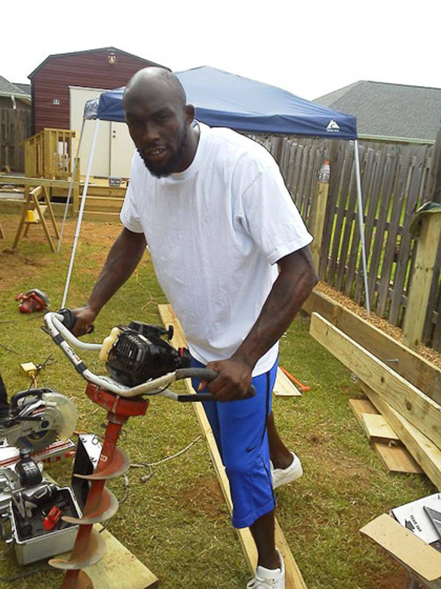Реджи Эванс настолько суров, что вообще никогда не отдыхает. Сейчас, к примеру, он облагораживает участок перед домом.