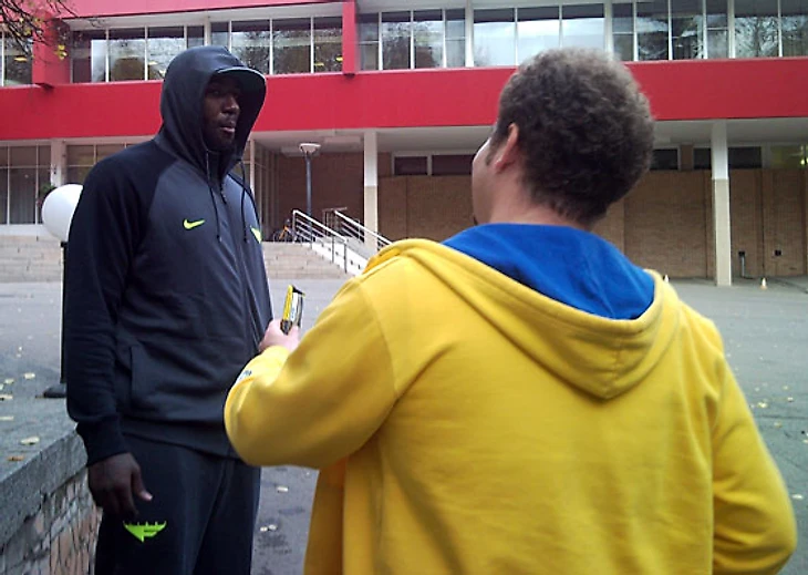 Когда многочисленные дубли надоели даже самому режиссеру, Блэйра было решено отдать на растерзание корреспондентам. На интервью центровой с неохотой выделил десять минут, ссылаясь на то, что плохо спал ночью. Мы просили двадцать.