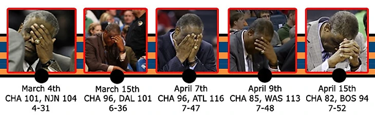 «Мы не хотим стать худшей командой в истории лиги. Об этом мы думаем и говорим. Мы просто хотим победить. Это единственная цель, которая у нас есть. С начала сезона мы поставили перед собой множество целей, но ни одну из них мы не воплотили в жизнь. Мы твердо намерены в последних пяти матчах довести до ума хоть это», – Джеральд Хендерсон дал понять, что движет «Шарлотт».