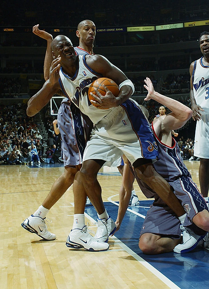 В 1997 году «Вашингтон» не был, как сейчас, местной кунсткамерой. Тогда, в команде коллекционировали талантливых здоровяков. Крис Уэббер и Джувэн Ховард (да, он и тогда блистал) крупнокалиберными «пулями» летели в атаку, а под кольцом всех ждал Георге Мурешан, на которого все смотрели снизу вверх. В такой ситуации даже молодым Беном Уоллесом пугать было не нужно. Целый абзац сейчас потрачен на то, чтобы рассказать о самой одаренной команде до пришествия мессии Гилберта Аренаса. Джордану же хватило одного матча для того, чтобы в одиночку показать столичному «Вашингтону» его место на карте НБА.