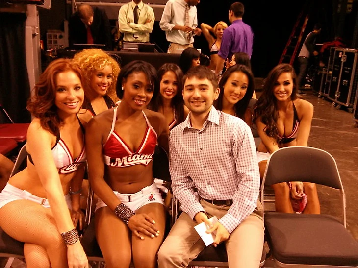 Во время другого перерыва на поле вышла группа поддержки «Майами», 17 роскошных девушек, которые, как мне кажется, привлекли внимание зала больше, нежели 10 потных баскетболистов. Мое так точно.