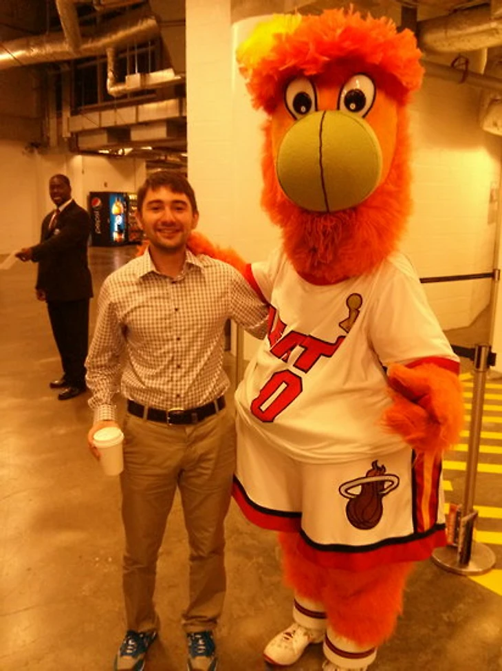 По рядам постоянно бегал талисман «Хитов» Burnie, который изображает огонь и силу горячих парней из Майами – по мне так просто милый рыжий петушок. Burnie постоянно колесил по стадиону, обнимался со всеми и жал руки болельщикам.