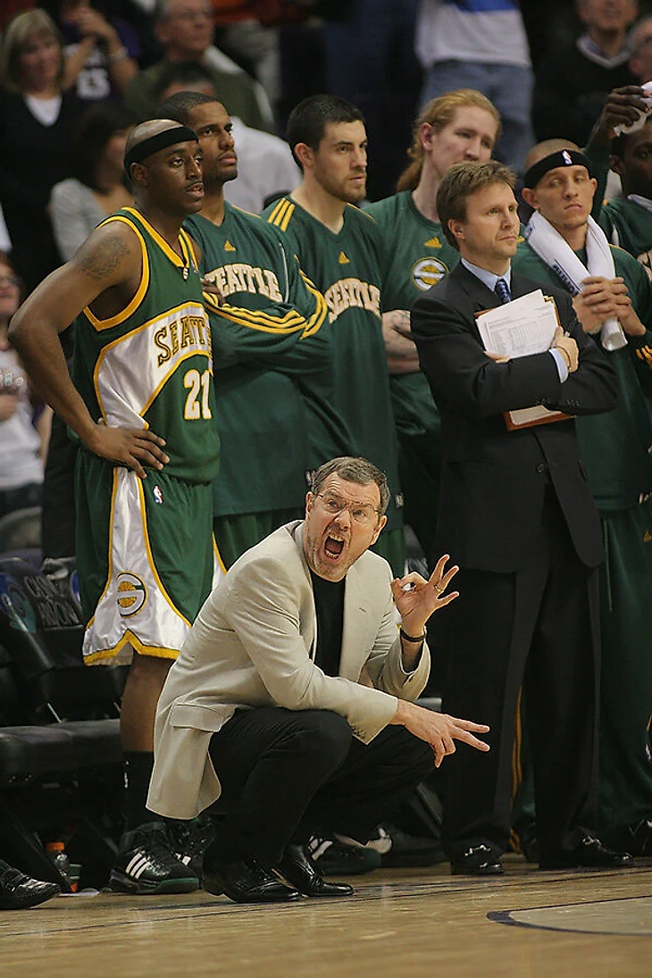 Короче, Рэй Аллен был в полном порядке, Рашард Льюис выдал по-настоящему прорывный сезон и впервые попал на Матч звезд, дебютировал в НБА Ник Коллисон – будущий талисман франшизы и мишень для безвкусных шуток про чемпионскую форточку, которая постепенно закрывается. Нэйт Макмиллан считался крайне перспективным тренером. Вряд ли кто из болельщиков «Сверхзвуковых» мог предположить, что уже совсем скоро их ждут по-настоящему черные дни – дни, когда они потеряют не только надежду на возрождение великой команды, но и саму команду в принципе.