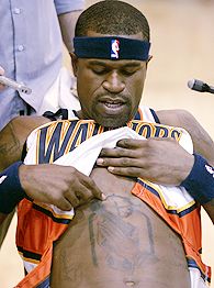 Это не просто татуировка на голове, это логотип Старбери, под которым игрок выпускал спортивную одежду и кроссовки. Сам он утверждал, что НБА хотела заставить его надевать повязку, чтобы скрыть татуировку во время матчей.
