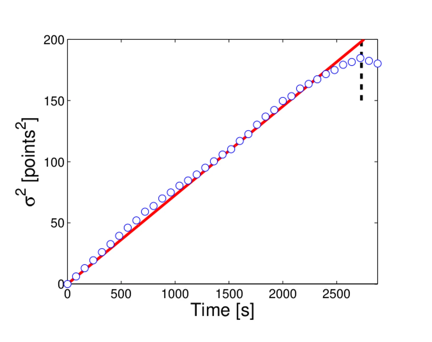 Опишем разницу в счете в момент времени t. В момент стартового спорного разница очевидно равна нулю. И она меняется в ту или другую сторону в зависимости от того, сколько очков и какая команда их набрала в каждом следующем эпизоде. Как мы убедились ранее это случайный процесс. Тогда разницу в счете можно представить как одномерное случайное блуждание. Для такого блуждания характерна линейная зависимость разброса от времени, что подтверждается данными для всей длины игру кроме последних 2-3 минут: