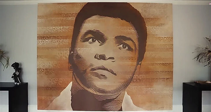 Дальше Мухаммед Али становится сквозной темой – он появляется и в ванной комнате на обоях, копирующих портреты боксера работы Энди Уорхолла.