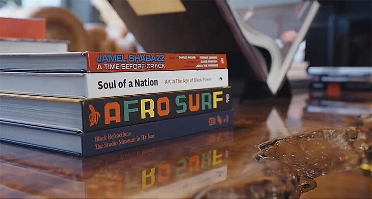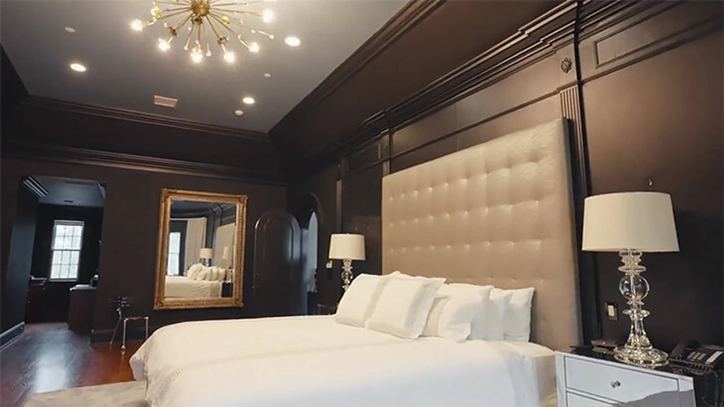 В этой комнате находится множество мелочей, которые – как объясняет Бономм – ассоциируются с Мело. Картина работы все той же Swoon, розовое пианино, металлическая люстра, большой камин, книги по истории афроамериканской культуры, кресла, сделанные на заказ, фигуры, привезенные игроком из Африки...