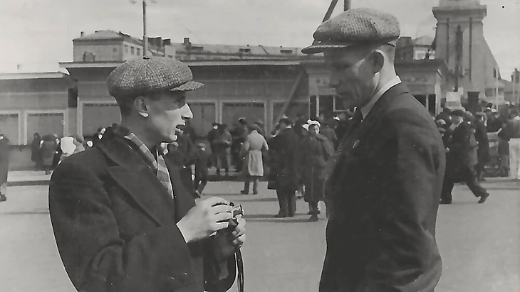 1936-й. Москва. Много раз они играли вместе за «Локомотив» и сборную Москвы. Но находили время и для хобби. Профессиональный «киношник» Константин Травин (справа) делится секретами с 17-летним Евгением Алексеевым