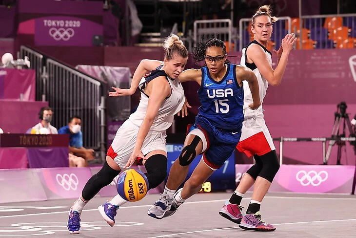 Ольга: Чем отличается обычный баскетбол 5х5 от 3х3? Мячом, кольцом, размером площадки, количеством начисляемых очков, игровым временем.