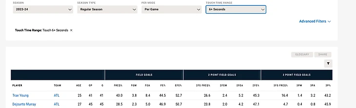 по 3,5 владений — у Мюррея 0,89, у Янга 0,94. При этом EFG% больше у Мюррея