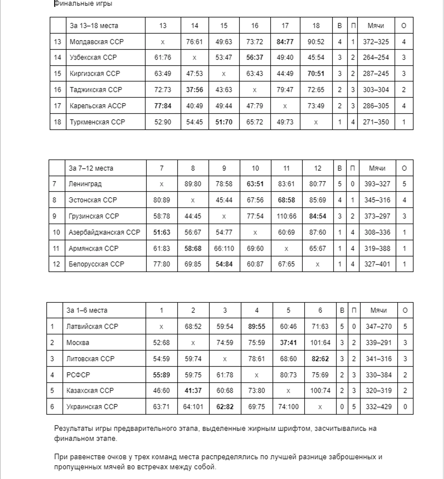 Третье место заняла Литва, четвертое — РСФСР, пятое — Казахстан, шестое — Украина.