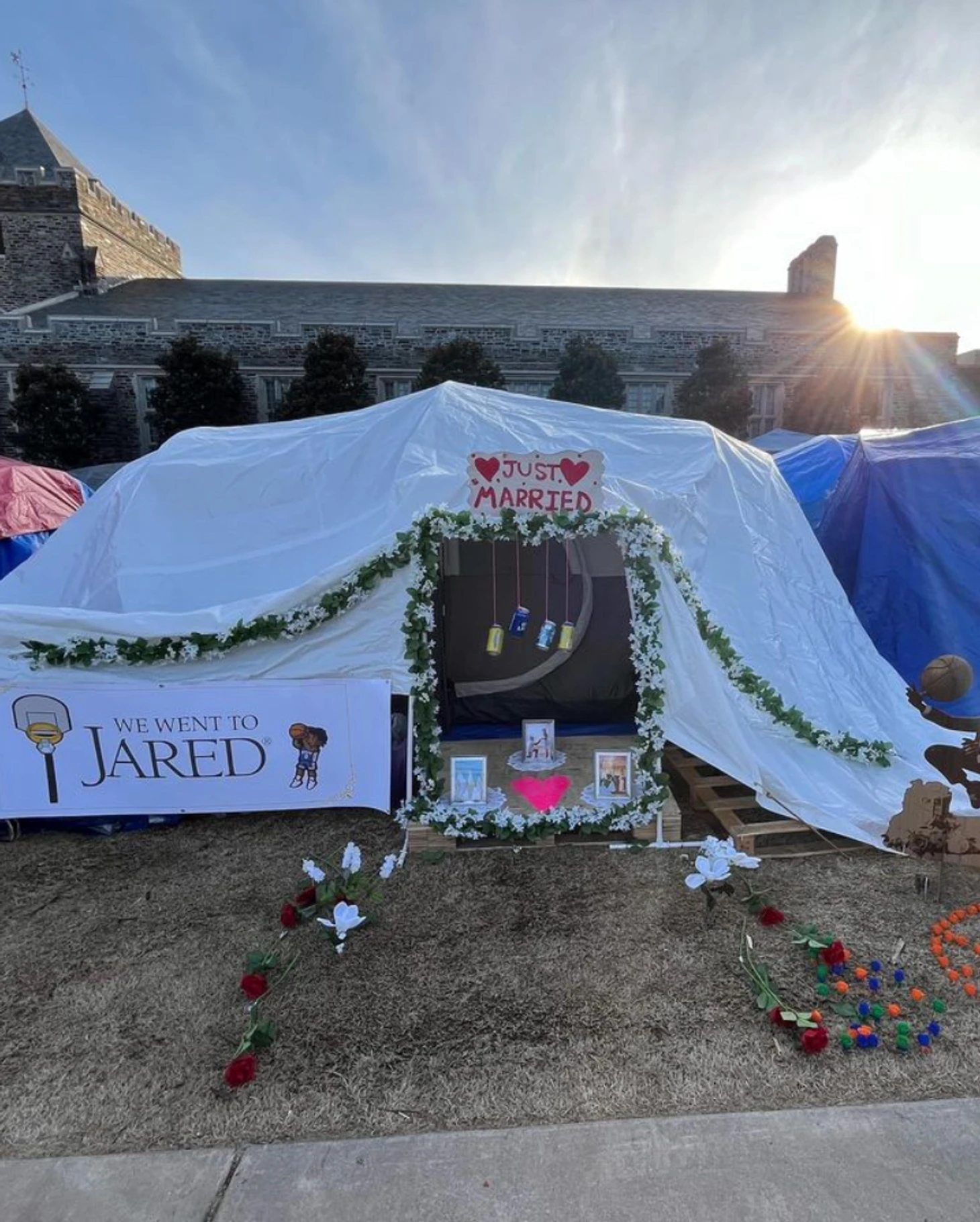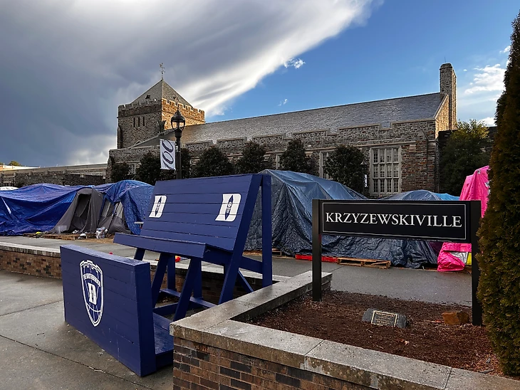 Итак, знакомьтесь, Кшишевскивилль. Назван в честь легендарного Коуча К, Майка Кшишевски, который сделал Дьюк главной силой в студенческом баскетболе и регулярным поставщиком топовых проспектов НБА. Традиция зародилась в 1986 году, когда вместо того, чтобы стоять в многочасовой очереди перед игрой, группа студентов пошла дальше и установила палатки в очереди за несколько дней до игры, чтобы гарантировать места в первом ряду.