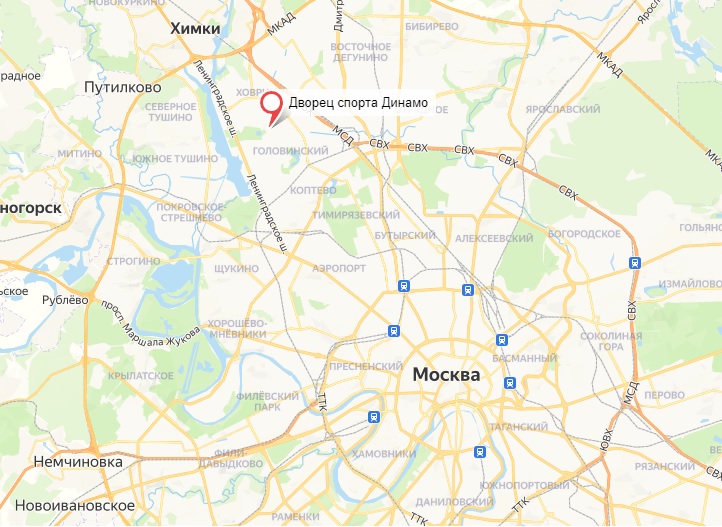 Адрес дворца спорта «Динамо» на карте Москвы.