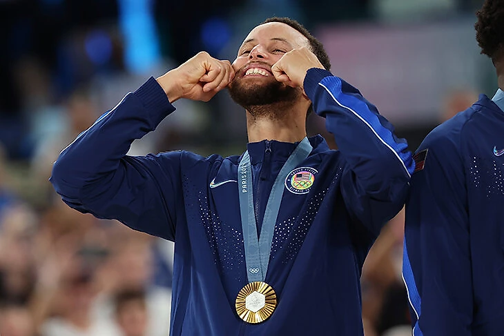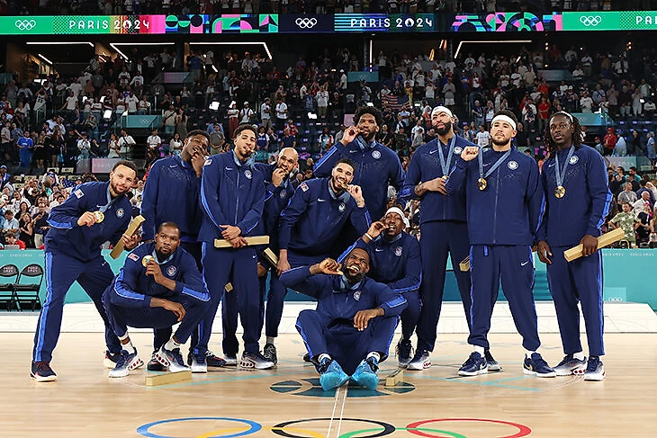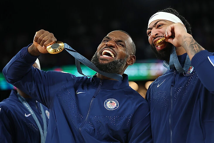 Американская сборная взяла самое ожидаемое золото этих Игр, но радовалась ему не хуже всех остальных: и Кевин Дюрэнт, ставший первым в мужском баскетболе, у кого четыре высшие медали, и Карри, получивший свою первую награду в жизни, и Эмбиид, поиздевавшийся над всей Францией, и Тайриз Халибертон, отбегавший около 25 минут за две недели, и, конечно, Лекапитан, золотой прикус которого пополнил коллекцию знаковых его фотографий.