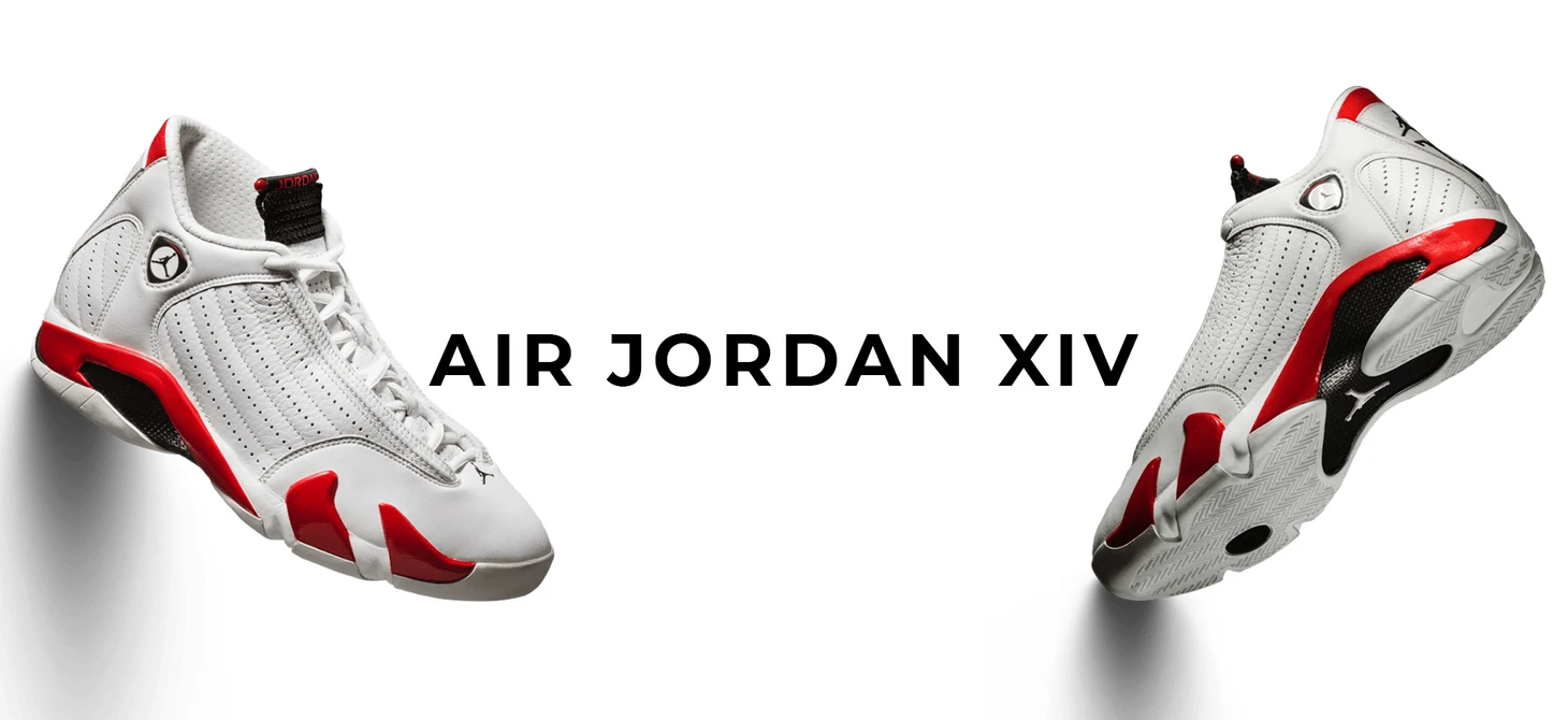 В октябре 1998 года стартовали продажи 14 версии кроссовок, над дизайном которых работал Тинкер Хэтфилд. Основной цвет белый с небольшими вставками черного и красного. Черный логотип красовался на боковой части кроссовок, а белый — на подошве.