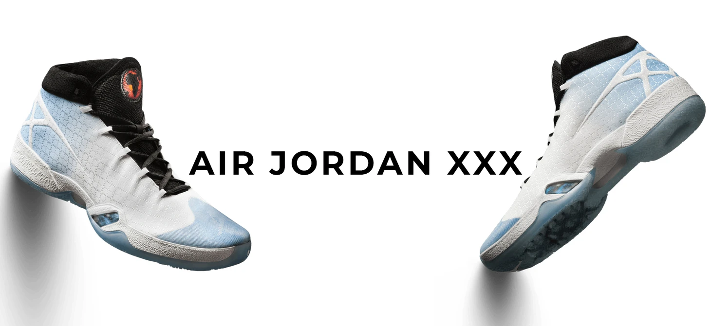 Над юбилейными 30 кроссовками в серии Тинкер Хэтфилд работал в паре с Марком Смитом. Модель получилась интересной и необычной. У модели сменился логотип и цветовая гамма. К традиционному булому и черному был добавлен небесно-голубой.