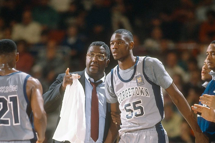 У «Хойяс» появился крутой дуэт: Дикембе Мутомбо – Алонзо Моурнинг. Это был мощнейший защитный фронткорт во всей НСАА. Фанаты «Джорджтауна» придумали фишку под названием Rejection Row – когда кто-то из этой пары блокировал очередной бросок, болельщики в ряд выставляли картонные ладони, поэтому к концу игры ряд картонных рук мог быть длинным.