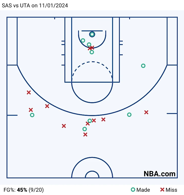 С «Ютой» без Лаури Маркканена, абсолютно худшей командой лиги на данный момент, вроде бы не считается. И все же через сто лет вряд ли кто-то будет выяснять, насколько впечатляющим было это достижение. Как минимум, повсеместные усилия Вембаньямы напрямую отразились на результате: «Сперс» уступали в первой четверти (19:30), но затем соперника снесли – 106:88, преимущество выросло до «+20» в начале четвертой четверти.