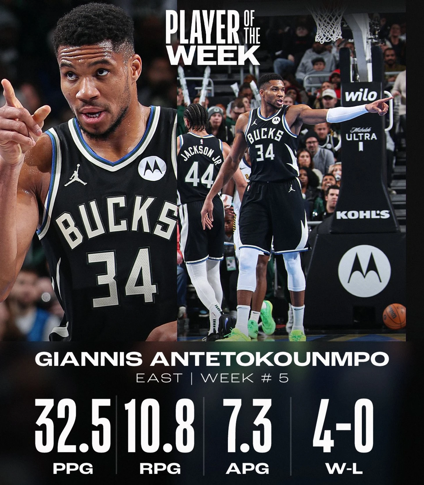 На востоке с игроком недели все просто. Да, на Янниса немного погнали волну, обвиняя его в тренерской чехарде и приходе Лилларда, после того как все эти (вряд ли именно им инспирированные) события не привели к доминации и покорению лиги. Настройка нового механизма Милуоки Бакс потребовала очень много времени и нервов. Все уже приготовились к распродаже и выстроились в очередь, чтобы урвать лакомые кусочки с пепелища в Висконсине...но грек сказал, что он не собирается опускать руки. Грек сделал.