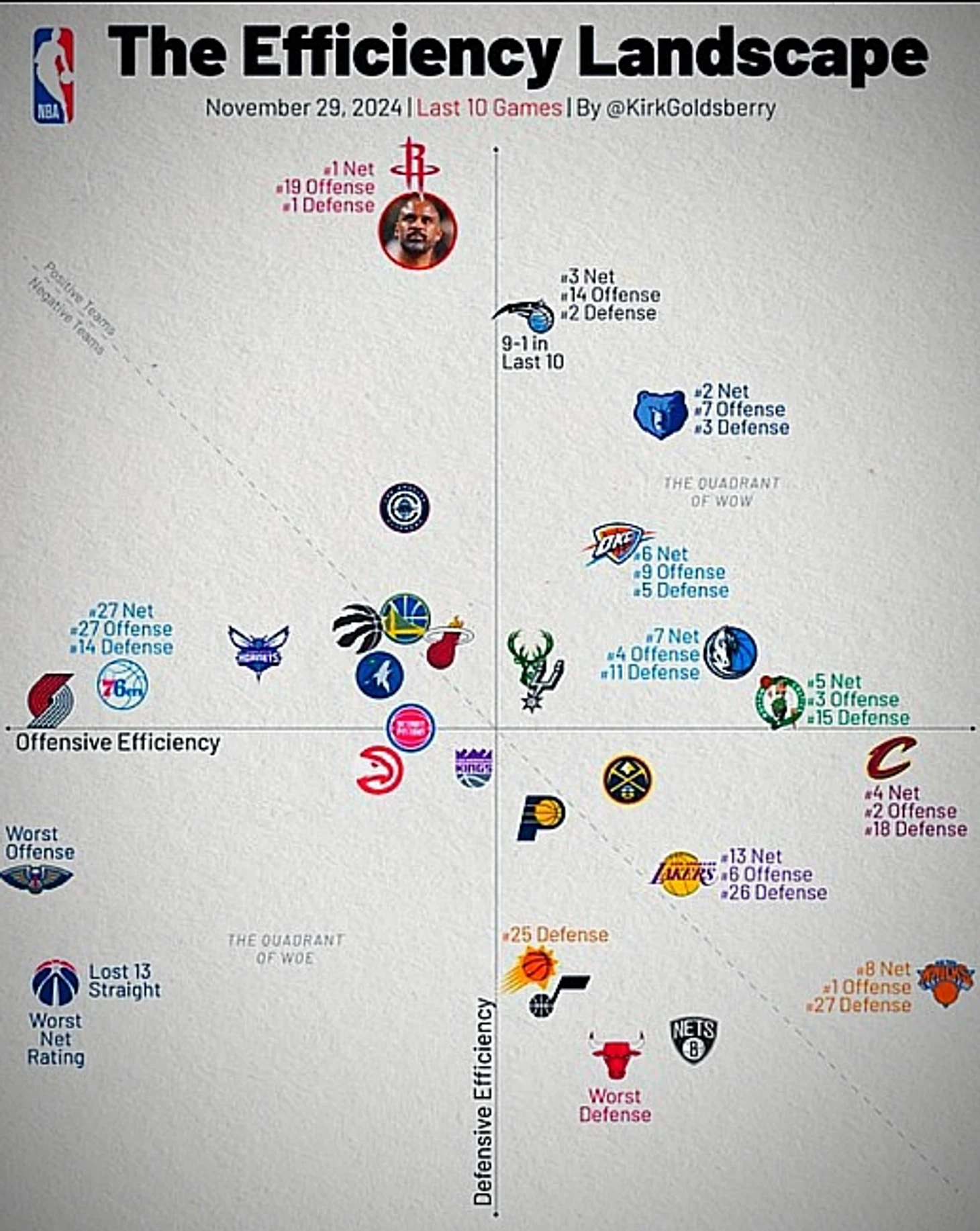 На седьмом месте в ноябре Милуоки (9-5), но у них было ужасное начало месяца (1-4), с Кливлендом Адетокумпо матч пропускал, потом была победа над Майами без участия грека, поэтому Янниса в ноябре скорее всего прокатят с «игроком месяца».