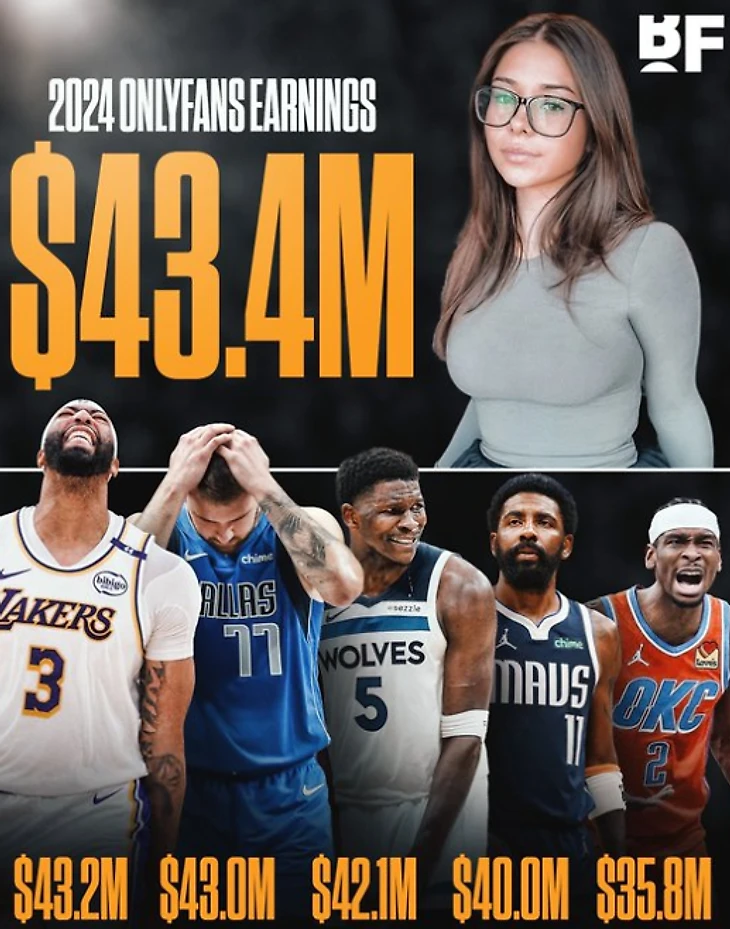 Onlyfans-модель зарабатывает больше топовых спортсменов: даже главная звезда НБА получает меньше😮💰