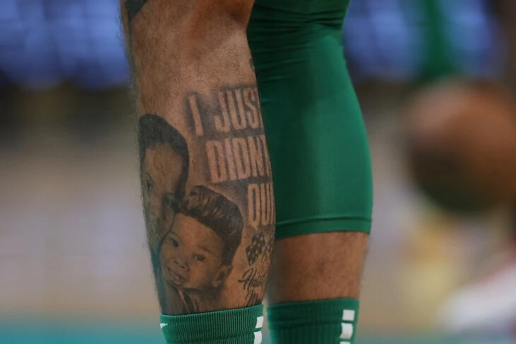 Первое тату форвард «Селтикс» сделал в 2017-м в 19 лет: «Боль была невыносимая, нам часто приходилось останавливать процесс, и когда он закончился, я думал, что больше никогда не буду этого делать. Но потом у меня родился сын, и это была моя следующая татуировка. Я хотел, чтобы что-то украсило мою ногу. А потом я нашел красивое фото мамы. И дальше тату стало неотъемлемой частью моей жизни.