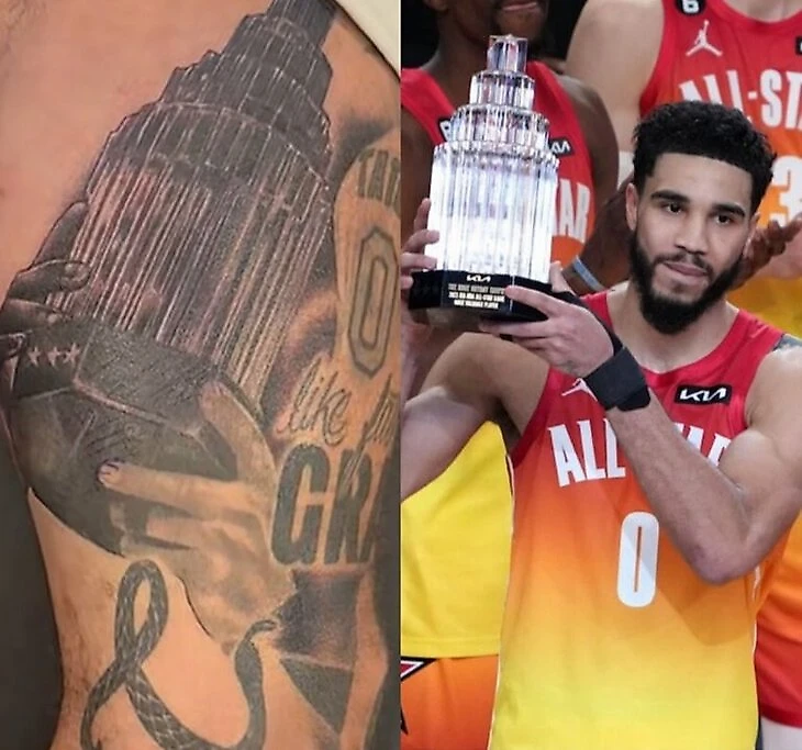 Еще одним важным человеком для Лос-Анджелеса и для Тейтума был, конечно же, Кобе Брайант. После гибели Кобе форвард «Бостона» просто не мог не сделать тату в честь кумира. На его теле изображена черная мамба в виде цифры 24, а спустя какое-то время появилось изображение рук, держащих награду MVP Матча звезд, которая носит имя Кобе.