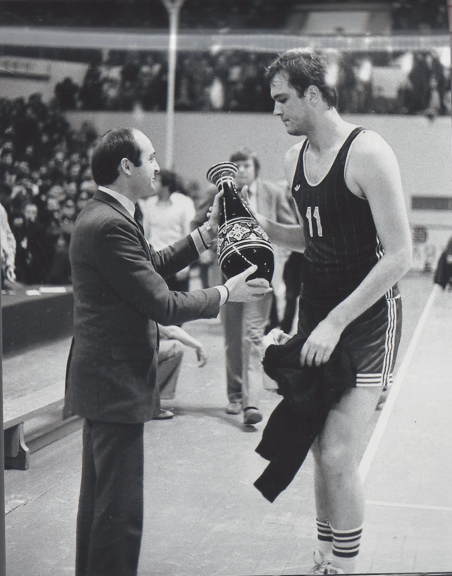 А начался сезон-1977/78 с официальных проводов из большого баскетбола легендарного литовца, чемпиона мира, Европы и олимпийских Игр Модестаса Паулаускаса. По этому знаменательному поводу в Каунас приехала сборная СССР, чтобы 14 октября 1977 года принять участие в его прощальном матче.
