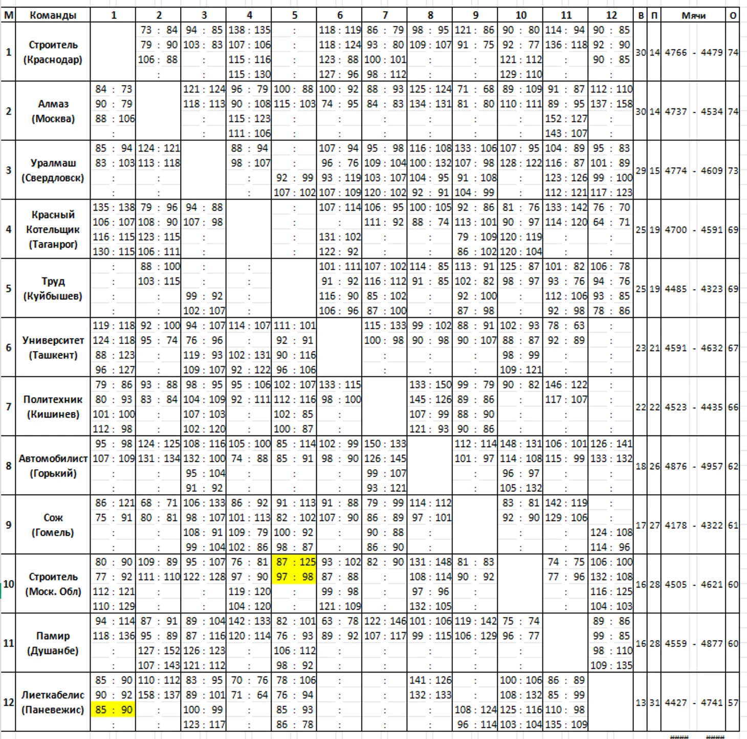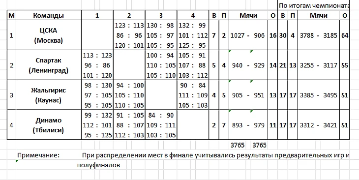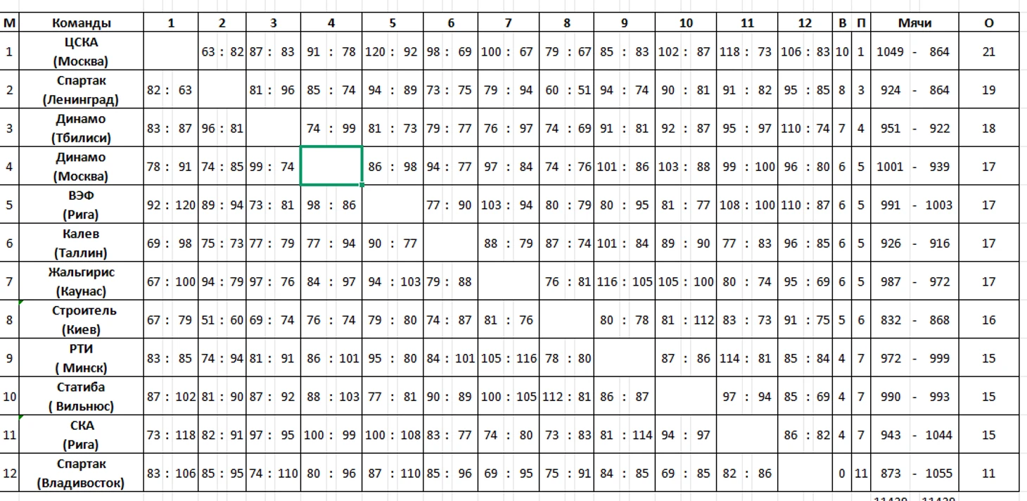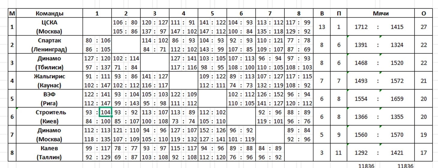 В оставшихся матчах тура чемпион разгромил всех соперников: СКА – 118:73, «Калев» – 98:69, «Жальгирис» – 100:67, московское «Динамо» – 91:78 и «Строитель» – 79:67! Почувствуйте руку Гомельского.