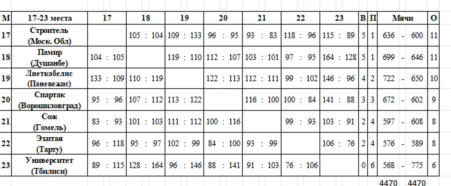 XLV чемпионат СССР. Первая лига. Финальные игры. За 17-23 места. 4-11 апреля 1978. Душанбе