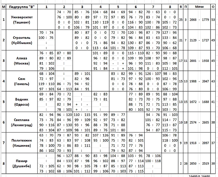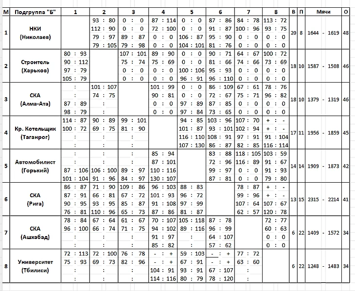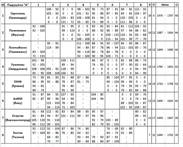 Это поражение стало для «Спартака» единственным в ленинградской подгруппе. Московские динамовцы уступили дважды (ЦСКА – 102:127 и «Спартаку» – 73:81), армейцы Киева – трижды (ЦСКА – 87:127, «Спартаку» – 70:76 и «Динамо» М – 114:120).