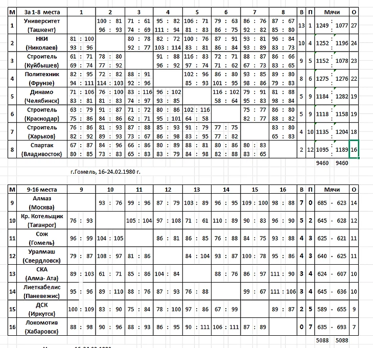 Армейцы Киева, проиграв дома еще трижды (ВЭФу, «Статибе» и «Жальгирису»), выбыли из борьбы за медали. Единственную радость своим фанатам доставил выдающийся бомбардир Александр Сальников, который в матче с тбилисским «Динамо» (121:98) набрал 63 очка! Спустя год он вновь и опять в Киеве превзошел магический рубеж «60» (в феврале 1979-го владивостокскому «Спартаку» забил 66)!