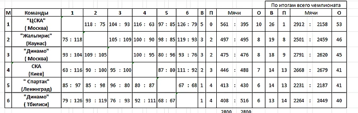 В принципе, могли по шесть побед одержать и московское «Динамо» с киевским СКА. С ЦСКА-то они уже встречались в Таллине, остальные были им вполне по силам. Но выиграли по пять: динамовцы уступили «Жальгирису» (уже понятно, что конкуренту в борьбе за медали), а киевские армейцы – тбилисскому «Динамо».