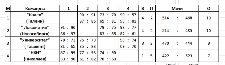Во второй день динамовцы устроили «беззащитное» шоу с киевским СКА – 133:108, на третий – снова набрали более 100 очков, но проиграли в двух овертаймах «Спартаку» – 110:111. Ленинградцы, в свою очередь, в четвертом туре уступили киевским армейцам – 74:96. Каждый из этого трио был сильнее и «Локомотива», и «Калева», а вот таллинский клуб у себя дома преподнес сенсацию со знаком «минус», проиграв все пять матчей.