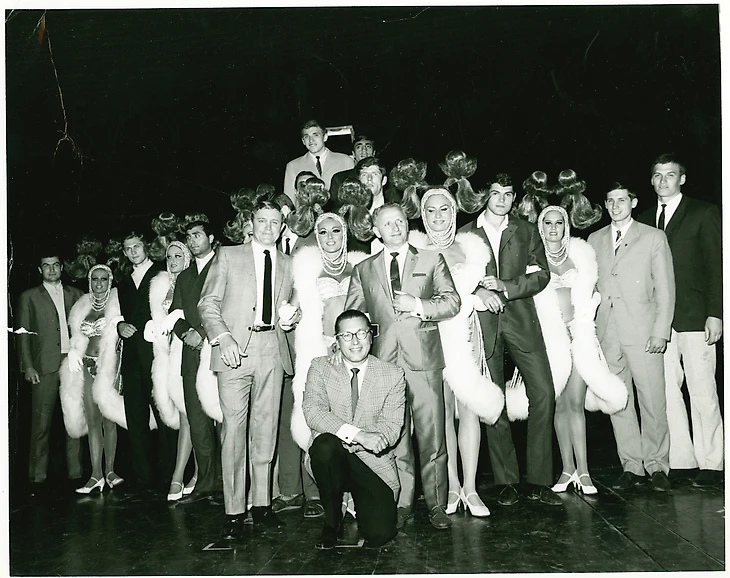 22 июня 1969. Карьеру в сборной Александр Болошев начал с турне по США, во время которого команда оказалась в Лас-Вегасе. Ну как можно было упустить возможность посетить всемирно известное шоу! Крайний слева – Вадим Капранов, далее (пропускаем девушек) Прийт Томсон и Зураб Саканделидзе, выше всех Александр Белов, рядом с ним Виталий Застухов, чуть ниже Сергей Коваленко, еще ниже Александр Гомельский, правее на фото от главного тренера Вадим Новиков, еще правее Анатолий Крикун и Александр Болошев (крайний справа). Имена импресарио и организатора турне неизвестны