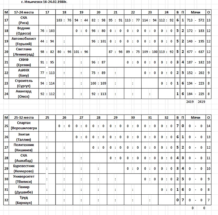 XLVII чемпионат СССР. Высшая лига. Финальные игры за 7-12 места. 5-10 марта 1980. Минск.