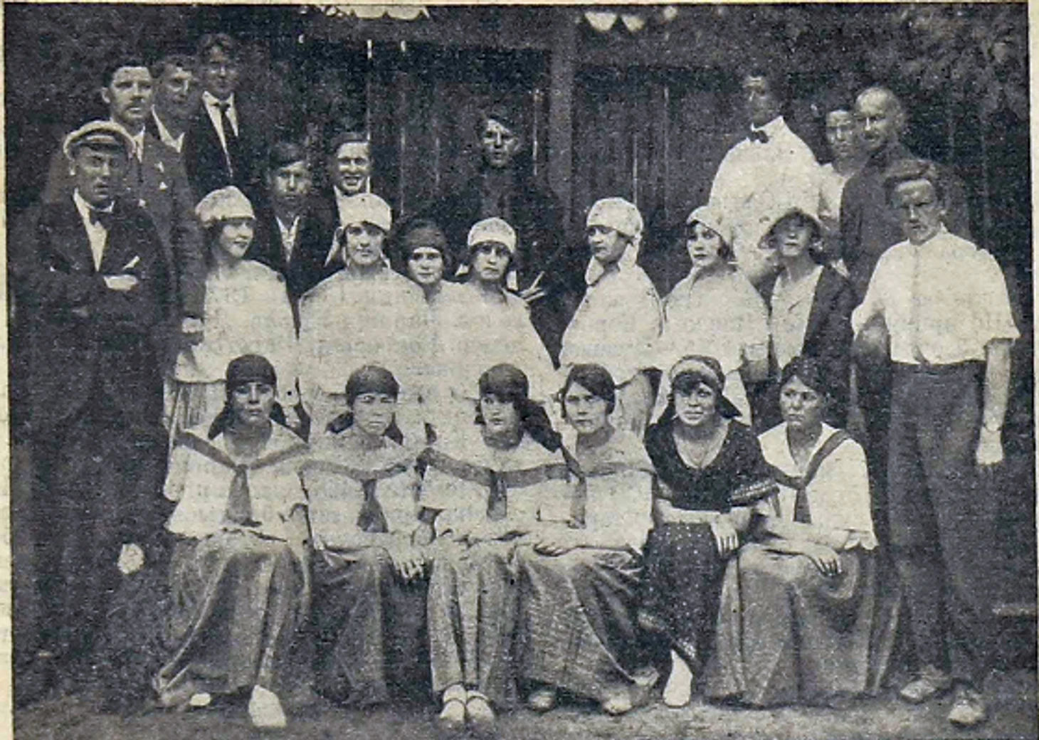 Команда ОЛЛС — чемпион Москвы 1922 года. Слева направо: А. Смирнова, П. Константинова, М. Кучерова, М. Петрова, Л. Викторова. Второй ряд: председатель комитета московской баскетбольной лиги С. В. Сысоев, судья, член правления ОЛЛС И. Гончаров, баскетболист мужской команды К. Жибоедов, председатель клуба Д. Л. Ребрик