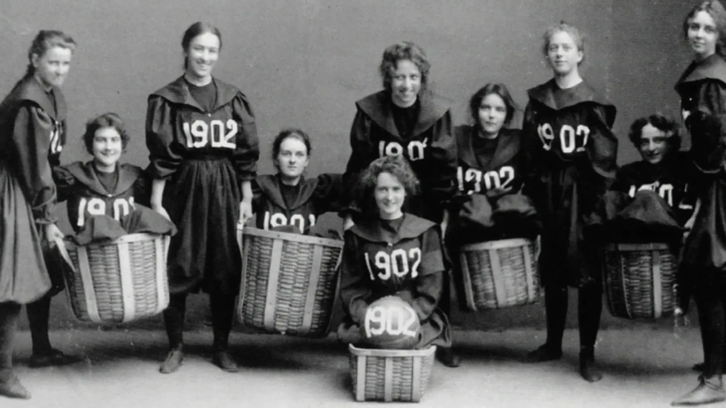 Мы точно знаем, когда был сыгран первый баскетбольный матч мужских команд — 21 декабря 1891 года в колледже американского штата Массачусетс преподаватель Джеймс Нейсмит предложил студентам сыграть в новую командную игру. Каждой из двух команд нужно было забросить как можно больше мячей в корзину соперников — одну из двух, прибитых к перилам балкона спортивного зала (в ход пошли корзины из-под персиков).
