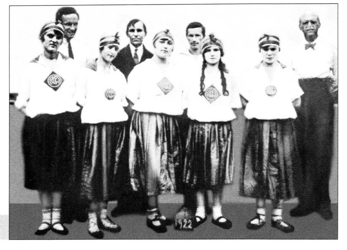 Команда Главной военной школы физического образования трудящихся Москвы. Слева направо: С. Домбровская, Е. Чеботарева, И. Циппель, Н. Копьева, З. Корьева