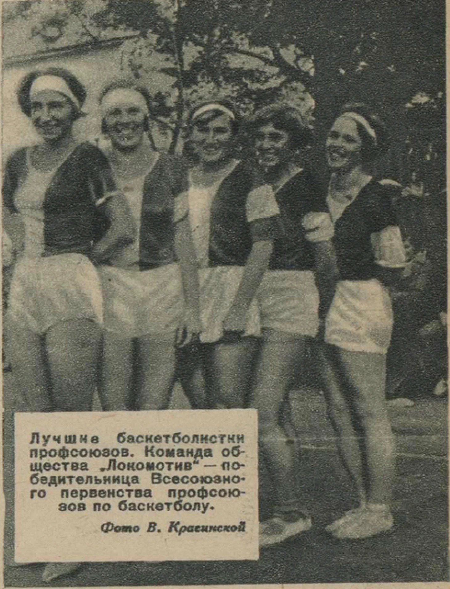 Бабушка была очень маленького роста — всего сто пятьдесят два сантиметра — и совсем вроде бы неприспособленная для баскетбола, но очень полюбила этот вид спорта. И вот когда она стала выступать за ленинградский «Спартак», то совершенно неожиданно оказалось, что она одна из лучших защитниц в стране. Во всяком случае, в 1930-е годы бабушка попала в сборную СССР и даже выезжала с этой сборной на первую рабочую Олимпиаду в Париж. Правда, капитаном команды она не была.