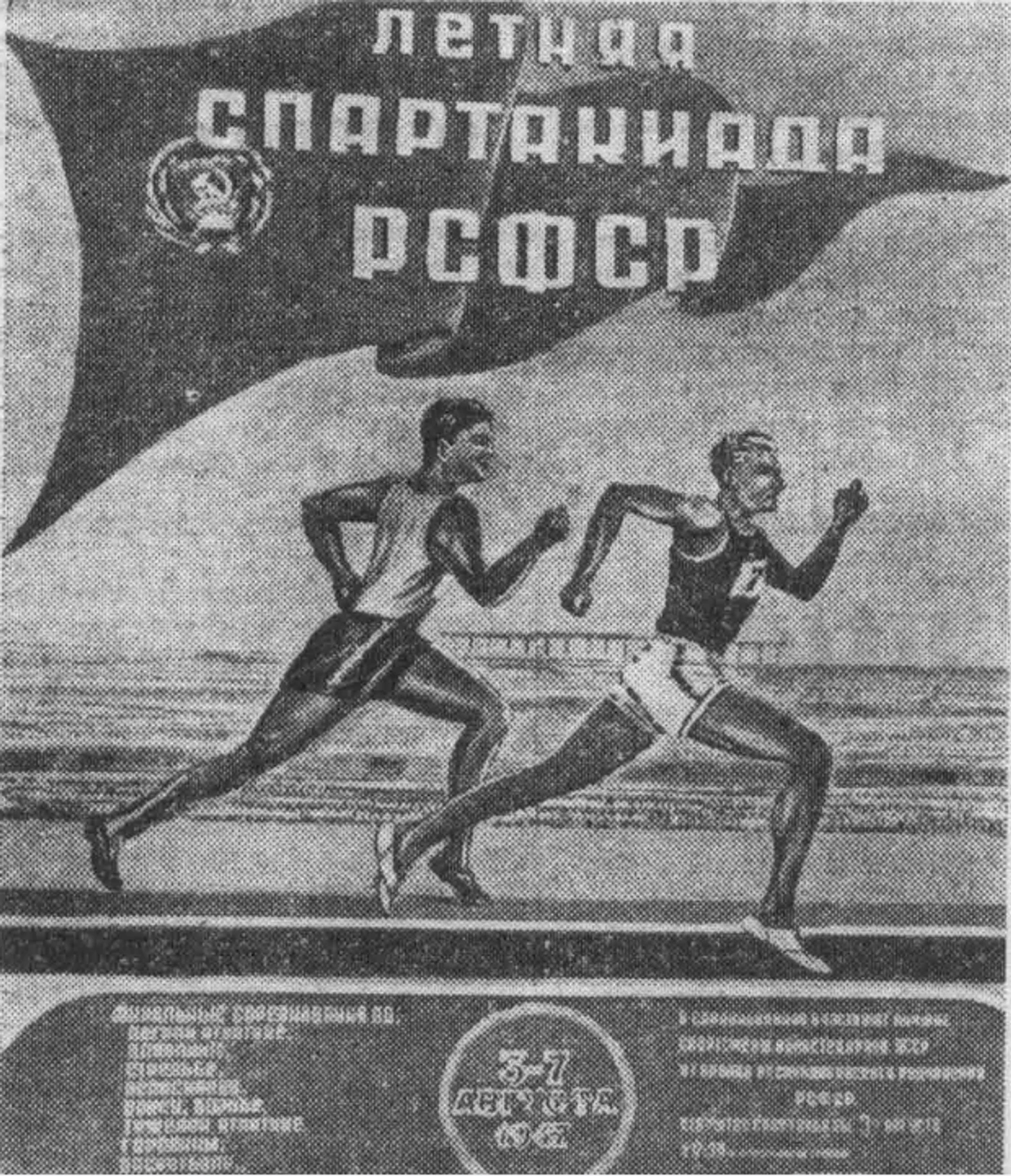Август 1947. Москва. Один из рекламных щитов, установленных в столице к I летней Спартакиаде РСФСР
