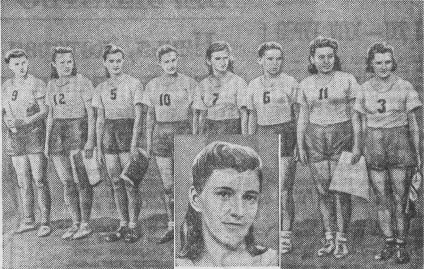 29 ноября 1947. III чемпионат Прибалтики. Сборная Литвы — победитель турнира. Слева направо: М. Корене, А. Бредите, Й. Мешкаускайте, Б. Павалките, О. Барткявичюте-Бутаутене, Б. Мотеюнайте-Гармене, Й. Светикене, И. Милюкштите