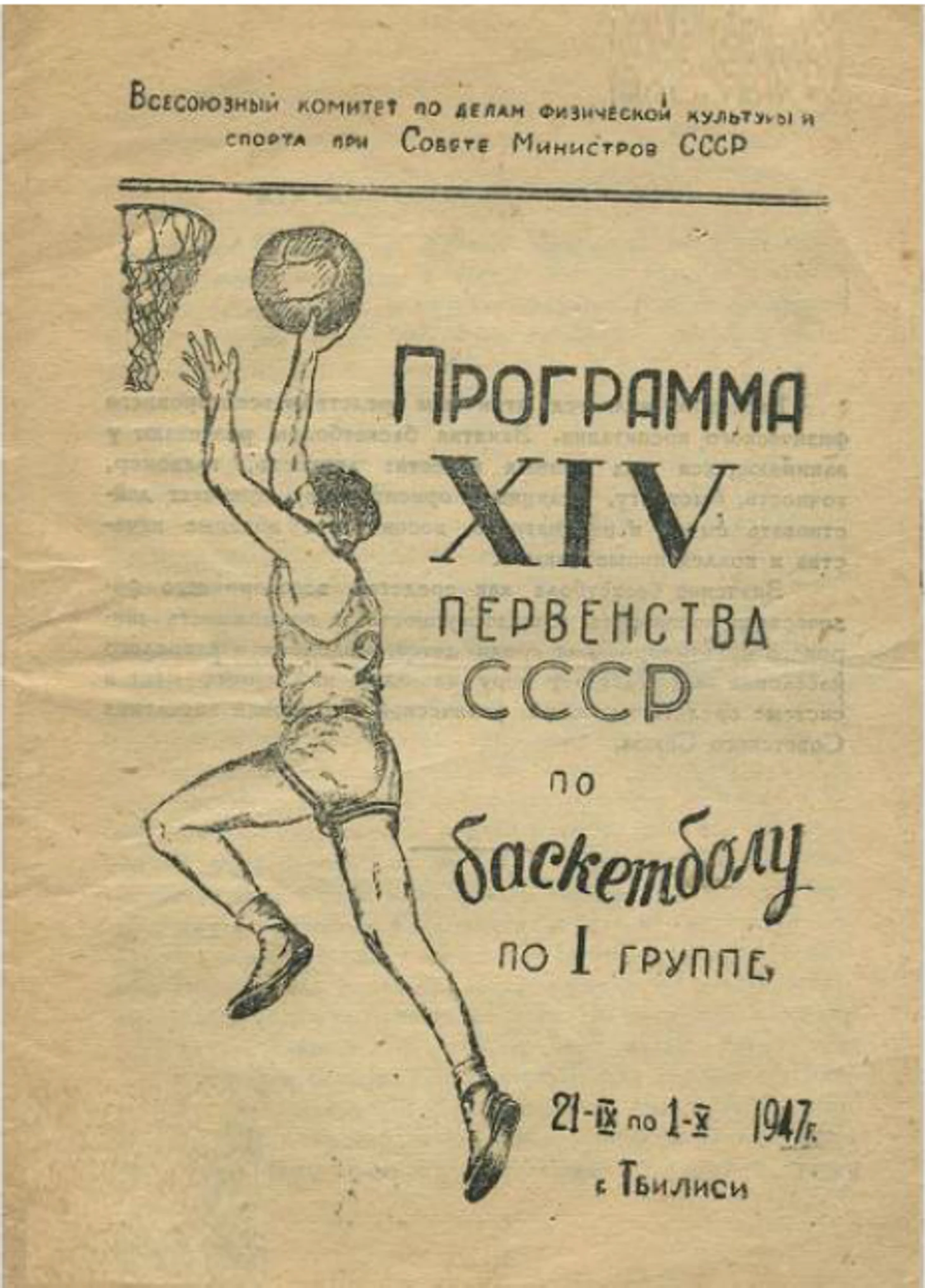 Сентябрь 1947. Тбилиси. Программа XIV первенства СССР по баскетболу по I группе