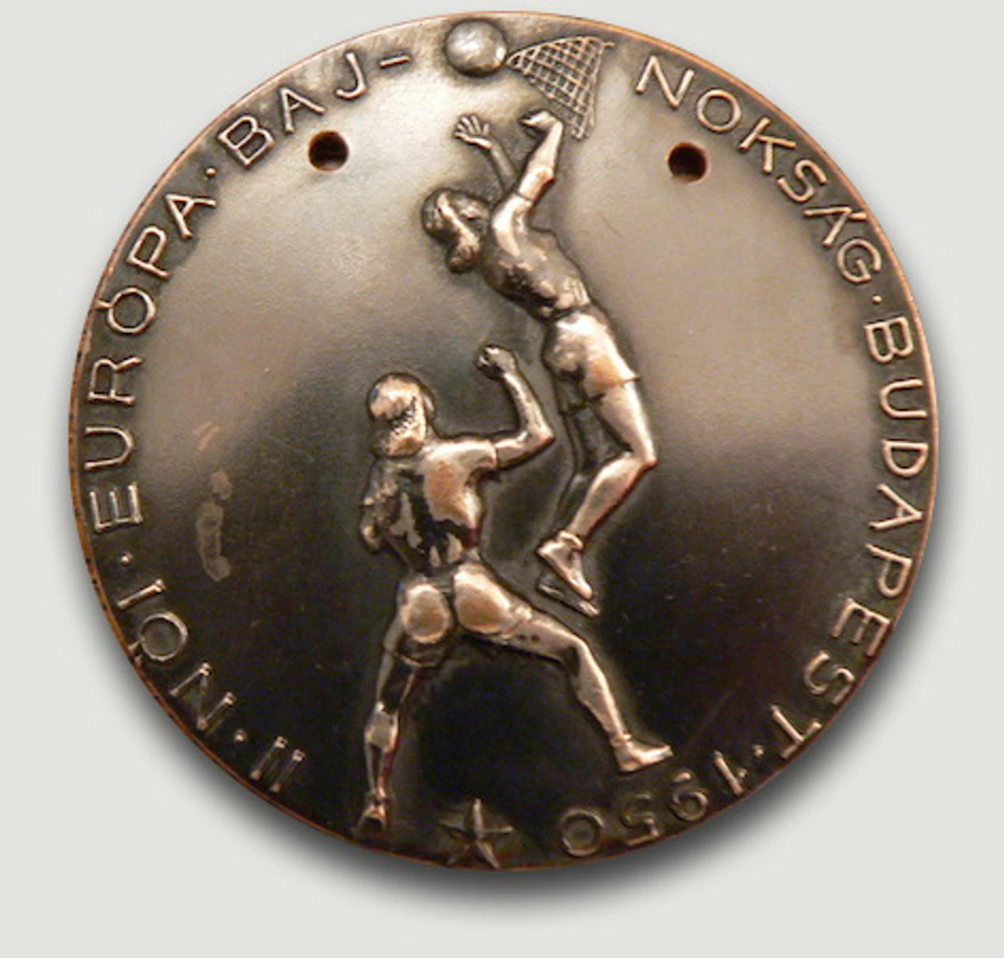 1950. Будапешт, Венгрия. Кубок и медали чемпионата Европы. А также специальный сувенир — его получили все участницы чемпионата