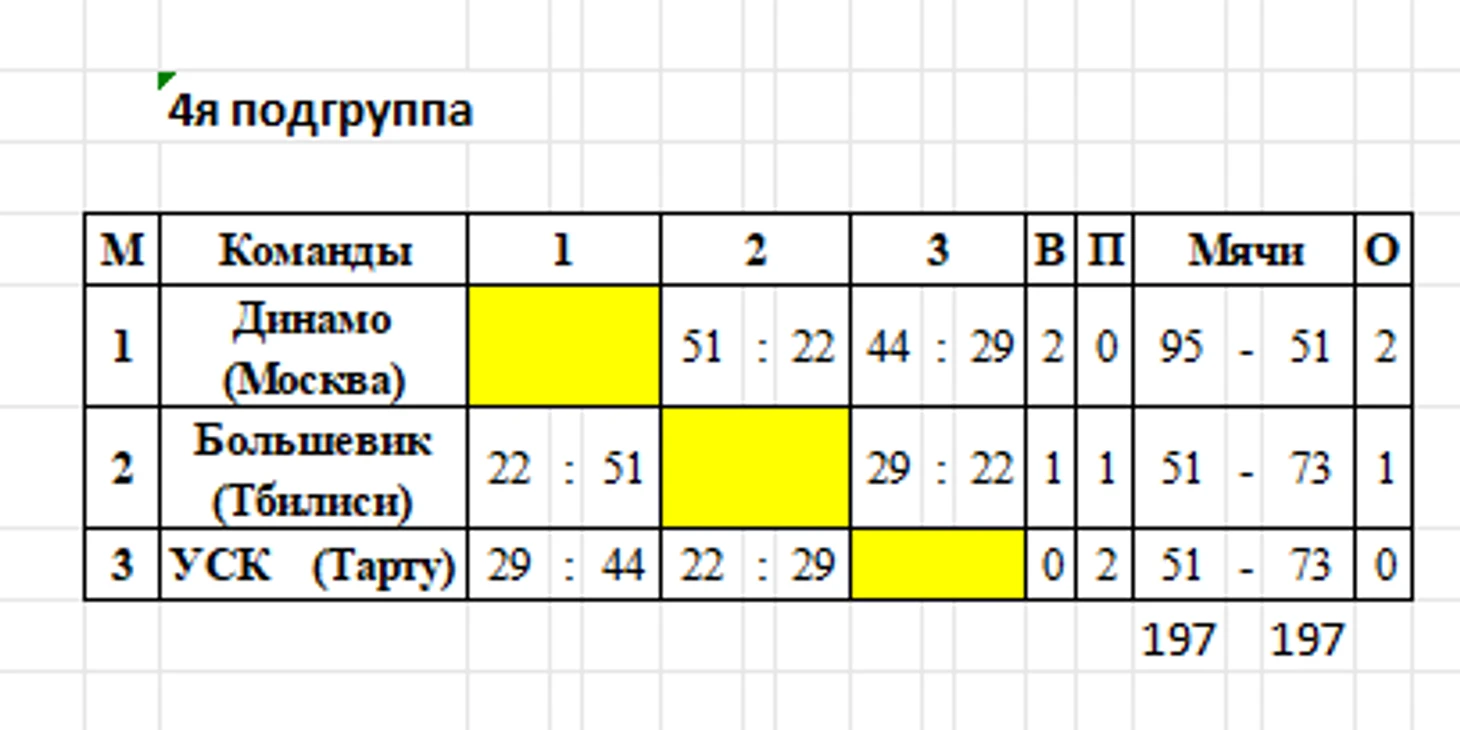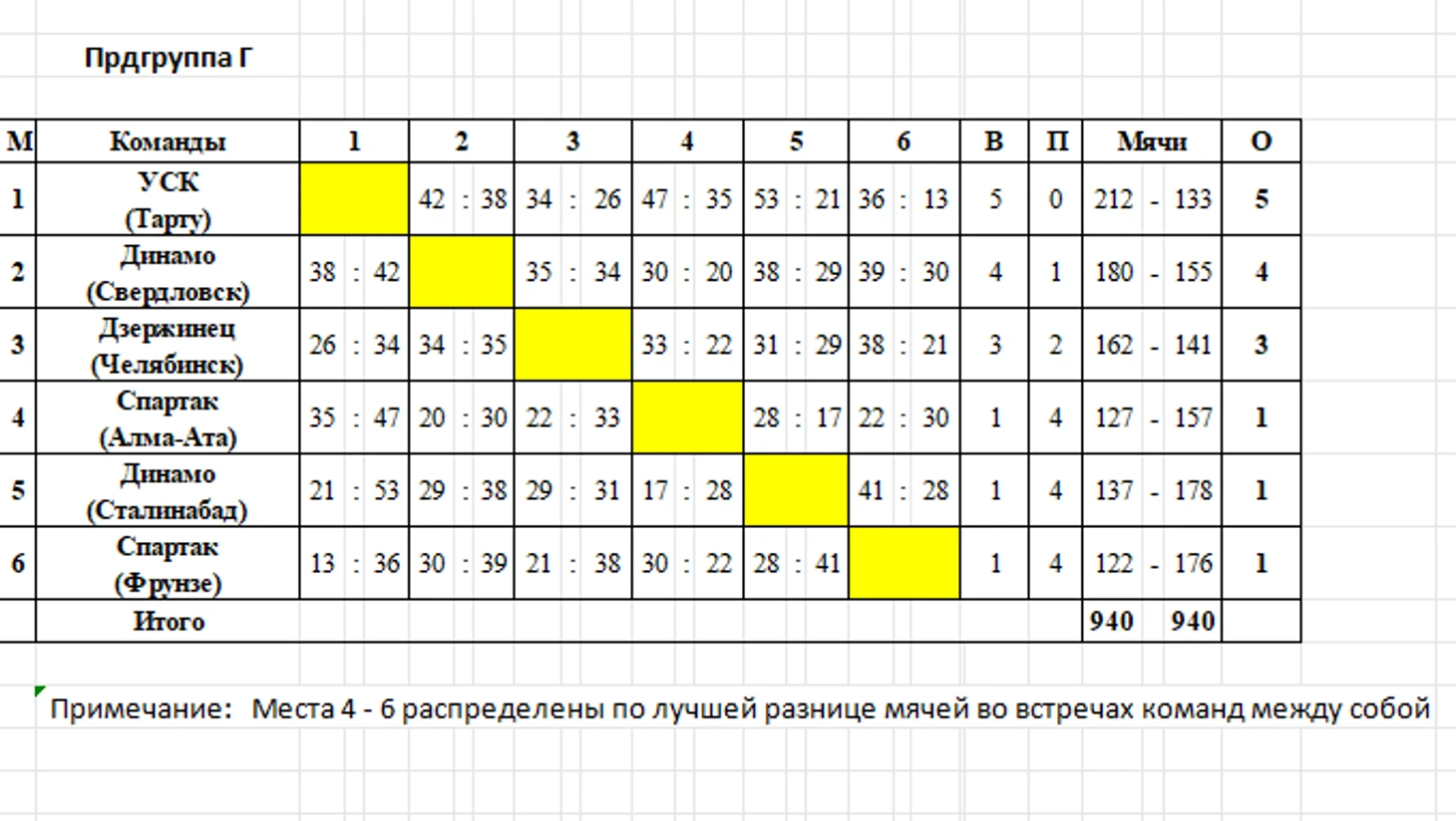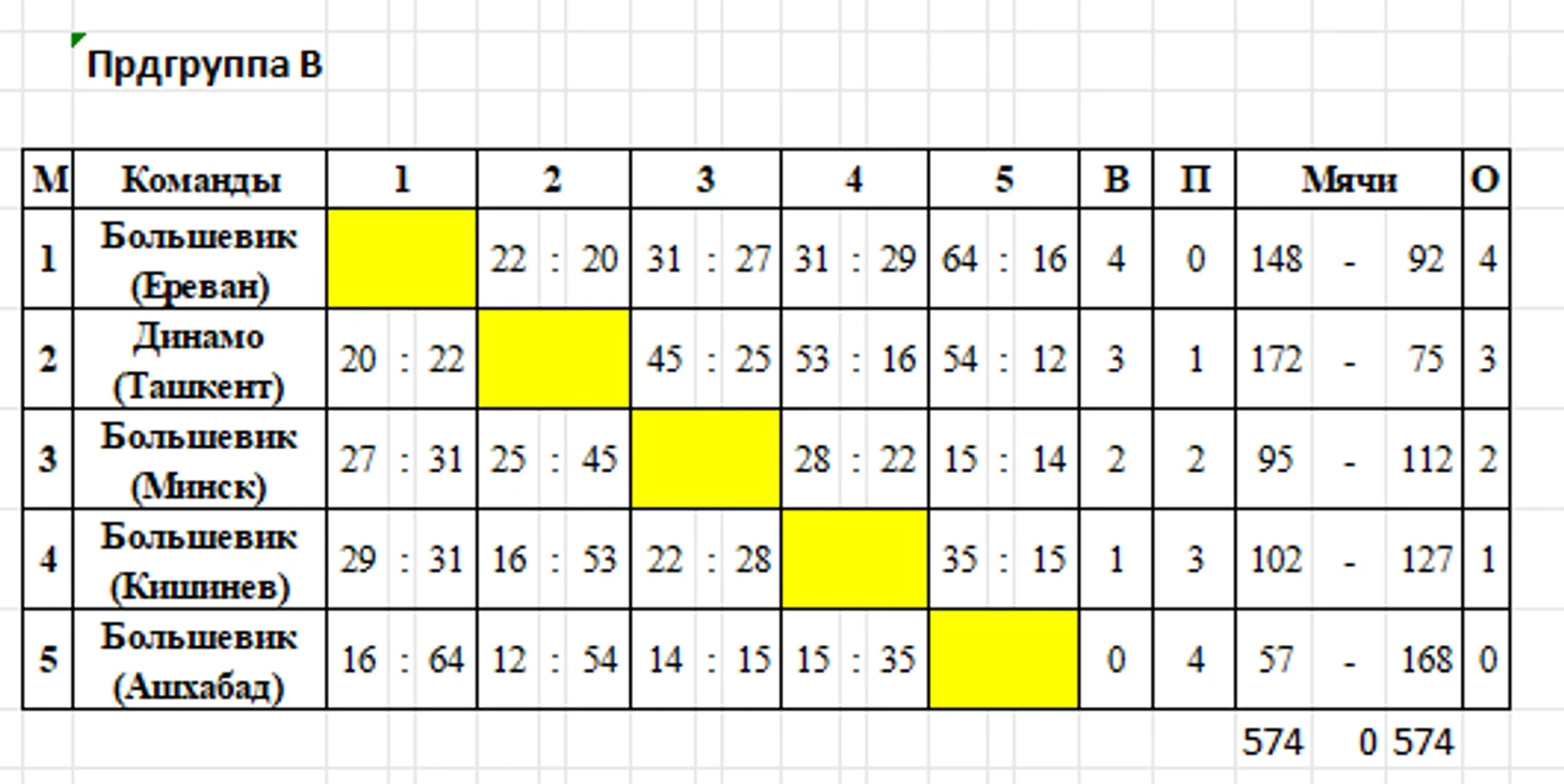 После уверенной победы над Киевом (вспомним, что «Динамо» — действующий чемпион страны) — 31:24, стало понятно, что Рига поднимется как никогда высоко, даже несмотря на поражение 18:19 от Ленинграда. В итоге Рига, Ленинград и Киев набрали одинаковое количество очков, но у команды Латвии оказалась лучше разница мячей.