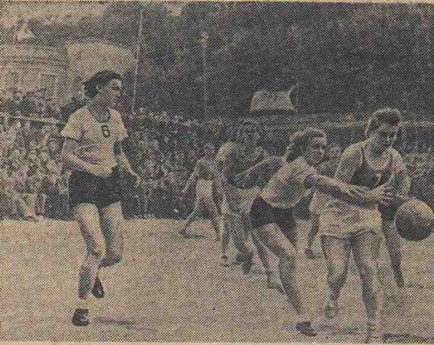 В Ленинграде в острой конкуренции побеждает «Буревестник». В северной столице играют еще со старыми баскетбольными стойками, к новому расположению щитов ленинградкам привыкать придется уже на Матче городов. Отметим, что перестройка площадок была повсеместной проблемой, во многих городах еще долго играли с прежним расположением щита на лицевой линии.